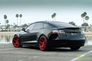 Xpel Stealth Black Model S 2016 Facelift with Gloss Black 21 inch TS115 Forged Wheels by T Sportline