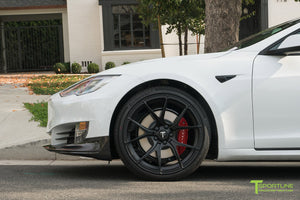 Pearl White Tesla Model S P100D with Matte Black TS115 Forged Wheels and Carbon Fiber Sport Package by T Sportline