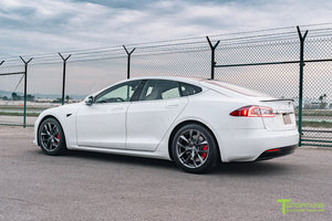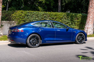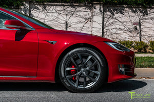 Midnight Silver Metallic Tesla Model S with 19" TSS Flow Forged Wheels in Matte Black by T Sportline
