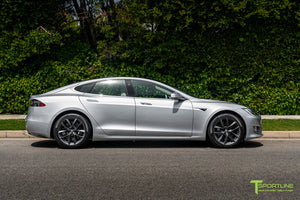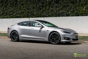 Midnight Silver Metallic Tesla Model S with 19" TSS Flow Forged Wheels in Gloss Black by T Sportline