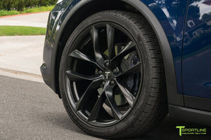 Deep Blue Metallic Tesla Model X with Matte Black 22 inch TSS Arachnid Style Flow Forged Wheels by T Sportline