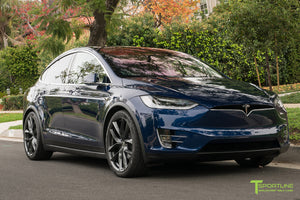 Deep Blue Metallic Tesla Model X with Space Gray 22 inch TSS Arachnid Style Flow Forged Wheels by T Sportline