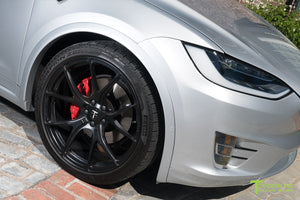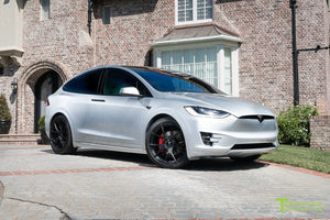 Silver 2016 Tesla Model X P90D Ludicrous - White Interior - 22 inch MX115 Forged Wheels Matte Black by T Sportline