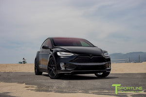 Yes, 21x9.5" and 21x10.5" MX Series forged wheels fit your factory Tesla center caps. They also fit your factory TPMS, tires, and lug nuts. In other words, there's no need to use any aftermarket hardware.