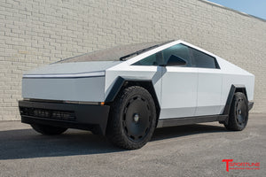 T Sportline's new 24" CTM (Tesla Cybertruck Monoblock) fully forged wheel has been engineered specifically to exacting dimensions to create a range preserving aero-efficient monoblock look while still retaining proper structural integrity for spirited Tesla Cybertruck driving. This massive, yet functional Cybertruck wheel is a forged monoblock wheel built for lasting endurance in all driving environments with the full strength confidence needed to survive the worst of road conditions. The CTM wheel line also features our exclusive fully floating center caps for the distinguished and tastefully hidden lug nut look. As you drive, the center caps 'float' in free rotation and the T logo remains horizontal at all times.