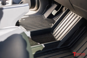 Stop the sliding! This mat will help stop your gear from sliding and clanging around in the lower center console. You'll also protect your Tesla Cybertruck lower center console with this precision fitment carpet mat from T Sportline. These center console mats are made from premium automotive grade, stain-resistant 28 oz rubber no-slip grip backed black carpet, cnc-cut and edge bound specifically to Cybertruck templates created by our engineers to provide floor coverage. Besides protection, the mats also create a layer that dampens noise and rattles from your gear sliding around. The T Sportline mats offer high wear and stain resistance, ready to last in the rugged Cybertruck environment. We are proud to make these mats in the USA 🇺🇸