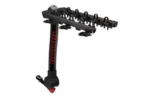 Our premium tilt-down hitch rack comes fully assembled out of the box. Installation is a breeze with the AutoPin™ and locking SpeedKnob™. New ZipStrips™ make loading and securing bikes simpler than ever. Need to access your vehicle? Simply tilt rack down with the conveniently located UpperHand™ lever. When used on an electric vehicle, this unit sits close to the trunk lid or tailgate, minimizing aero loses.