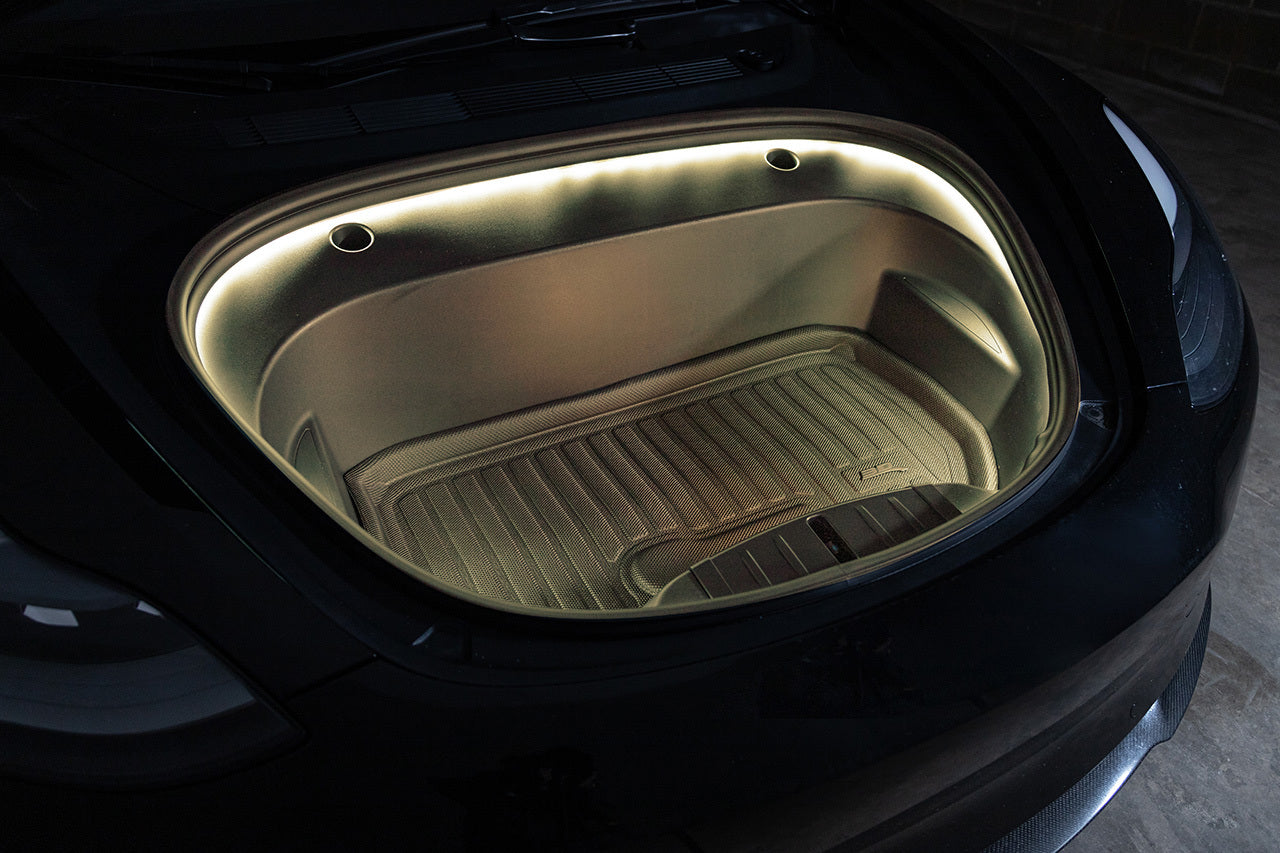 Ever notice the Tesla Model 3 / Y frunk is too dark to see your contents? T Sportline has a solution! Our funk LED light strip is a simple DIY solution to shining bright light into your frunk. The T Sportline LED strip plugs into the factory funk light connector and also allows for the factory light to remain functional as well. No tools are need to install this LED light strip. The T Sportline LED light strip will automatically turn off when the frunk is closed.
