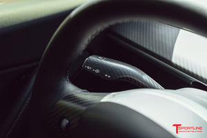 Improve the appearance of your Tesla Turn Signal Stalk Trim with T Sportline Carbon Fiber Turn Signal Stalk Trim Covers. These T Sportline premium covers are made from pre-preg carbon fiber in an autoclave, unlike other inferior and cheap-looking faux carbon wrapped covers. The T Sportline appliqués include a full surface attachment tape, ensuring an enduring installation. Other inferior covers use an inadequate strip of tape which may result in the cover loosening or falling off. The T Sportline Carbon Fiber Turn Signal Stalk Trim Covers not only enhance the look of the car, but provide a layer of protection against road debris, dings, and scratches. No tools are necessary for installation.