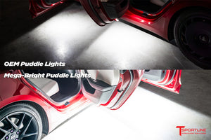 The perfect upgrade for every Tesla owner! These easy to install LED light modules are a quick DIY plug-and-play replacement for the factory Tesla lights. The T Sportline Mega-Bright Door & Puddle lights are literally MEGA-BRIGHT! You'll be shining bright, no matter the conditions. Upgrade now and never again squint and struggle looking in the dimly lit area under your doors when they are open!