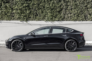 Yes, 20x8.5"and 20x10" TST wheels fit your factory Tesla center caps. They also fit your factory TPMS and your factory lug nuts. In other words, there is no need to use any aftermarket hardware.