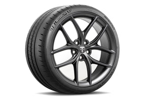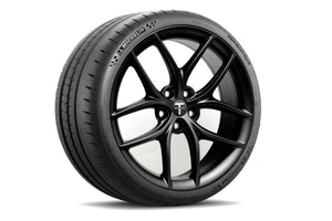 The T Sportline Michelin measures 12% wider (11.2” wide), versus factory front tire width of only 10” on the 19” Aero wheels, or 7.7% wider versus factory front tire width of only 10.4” on the 21” Arachnid wheels, further increasing tire grip for racing. The package is fully DOT compliant (street legal) and load rating compliant (95Y vs factory 92Y), allowing the convenience of installation at home and suitable for drives to and from the racing event in warm and dry weather (for long distance travel to racing events or during wet conditions, we recommend swapping this package on at the track).