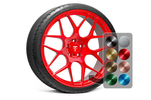 Our two standard color offerings are the Satin Black and Gloss Black electrostatic powder coat, either of which is sure to look great with all Tesla Model S colors.  For those that want to personalize the color and finish, we've created a wide range of custom options.   Want a true one-off custom, our bespoke custom team can get it done - have your 'spec' as you wish!