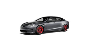 Yes, 19x9.5" TS Series forged wheels fit your factory Tesla center caps. They also fit your factory TPMS, tires, and lug nuts. In other words, there's no need to switch to any aftermarket hardware.