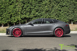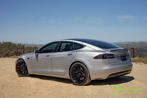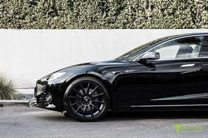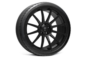 Yes, 21x9.0"and 21x10.5" TS Series forged wheels fit your factory Tesla center caps. They also fit your factory TPMS, tires, and lug nuts. In other words, there's no need to switch to any aftermarket hardware.
