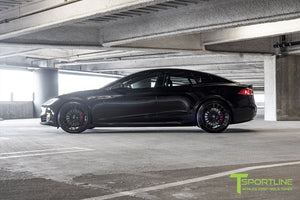 Yes, 21x9.0"and 21x10.5" TS Series forged wheels fit your factory Tesla center caps. They also fit your factory TPMS, tires, and lug nuts. In other words, there's no need to switch to any aftermarket hardware.