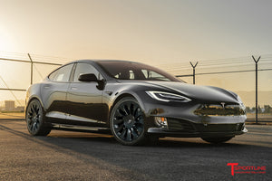 Yes, 20x9.0" and 20x10" TSV wheels fit your factory Tesla center caps. They also fit your factory TPMS, and your factory lug nuts. In other words, there's no need to use any aftermarket hardware.