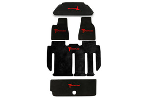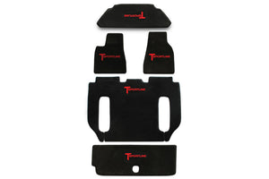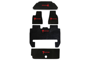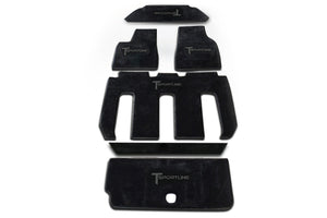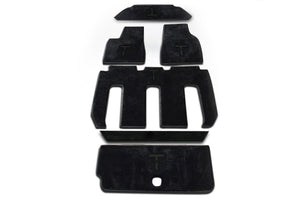7 Seat Configuration 4pc (Non-Fold Flat Seats)- driver floor mat, passenger floor mat, 2nd row floor mat, and 3rd row floor mat. 6pc frunk floor mat, driver floor mat, passenger floor mat, 2nd row floor mat, 3rd row floor mat, and trunk floor mat.