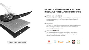 Protect your Tesla Model Y floor carpet with MAXpider 3D Elitect innovative three-layer construction floor mats. MAXpider 3D Elitect is the latest and greatest design. The mats are stylish and non-toxic! Sleek carbon fiber texture design enhances style and elegance to your Tesla. Keep your Tesla's interior looking stylish and clean. The soft foam XPE inner layer minimizes foot fatigue by providing cushion for your feet to rest on. It also provides a layer that dampens noise, further offering a smoother and quieter ride in the cabin. The patented anti-skid bottom layer keeps the mats in place without damaging the original carpet like other inferior mats or velcro systems.
