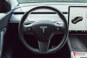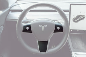 Improve the appearance of your Tesla steering wheel with T Sportline Carbon Fiber Steering Wheel Trim Appliqués. These T Sportline premium covers are made from pre-preg carbon fiber in an autoclave, unlike other inferior and cheap-looking faux carbon wrapped covers. The T Sportline appliqués include a full surface attachment tape, ensuring an enduring installation. Other inferior covers use an inadequate strip of tape which may result in the cover loosening or falling off. The T Sportline Carbon Fiber Steering Wheel Trim Appliqués not only enhance the look of the car, but provide a layer of protection against road debris, dings, and scratches. No tools are necessary for installation.