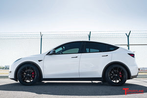 For Tesla owners seeking a balance of size, performance and value, look no further. T Sportline has teamed up with API, manufacturer of X-Comp and Advanta Tires to put together a value-oriented all season 20" Model Y wheel and tire package for the Tesla Model Y owner. Designed to complement Tesla's cutting-edge engineering, these packages feature lightweight flow formed, durable T Sportline wheels paired with all season high-performance tires that enhance handling, range, and ride comfort. Whether you're looking for all-season versatility or summer performance, these packages are carefully curated to maximize efficiency and traction while maintaining affordability. With options that prioritize aesthetics, durability, and cost-effectiveness, Tesla Model Y drivers can enjoy an upgraded driving experience without breaking the bank. Perfect for daily commutes or spirited drives, this Tesla Model Y wheel and tire package delivers exceptional value without compromising on quality or performance.
