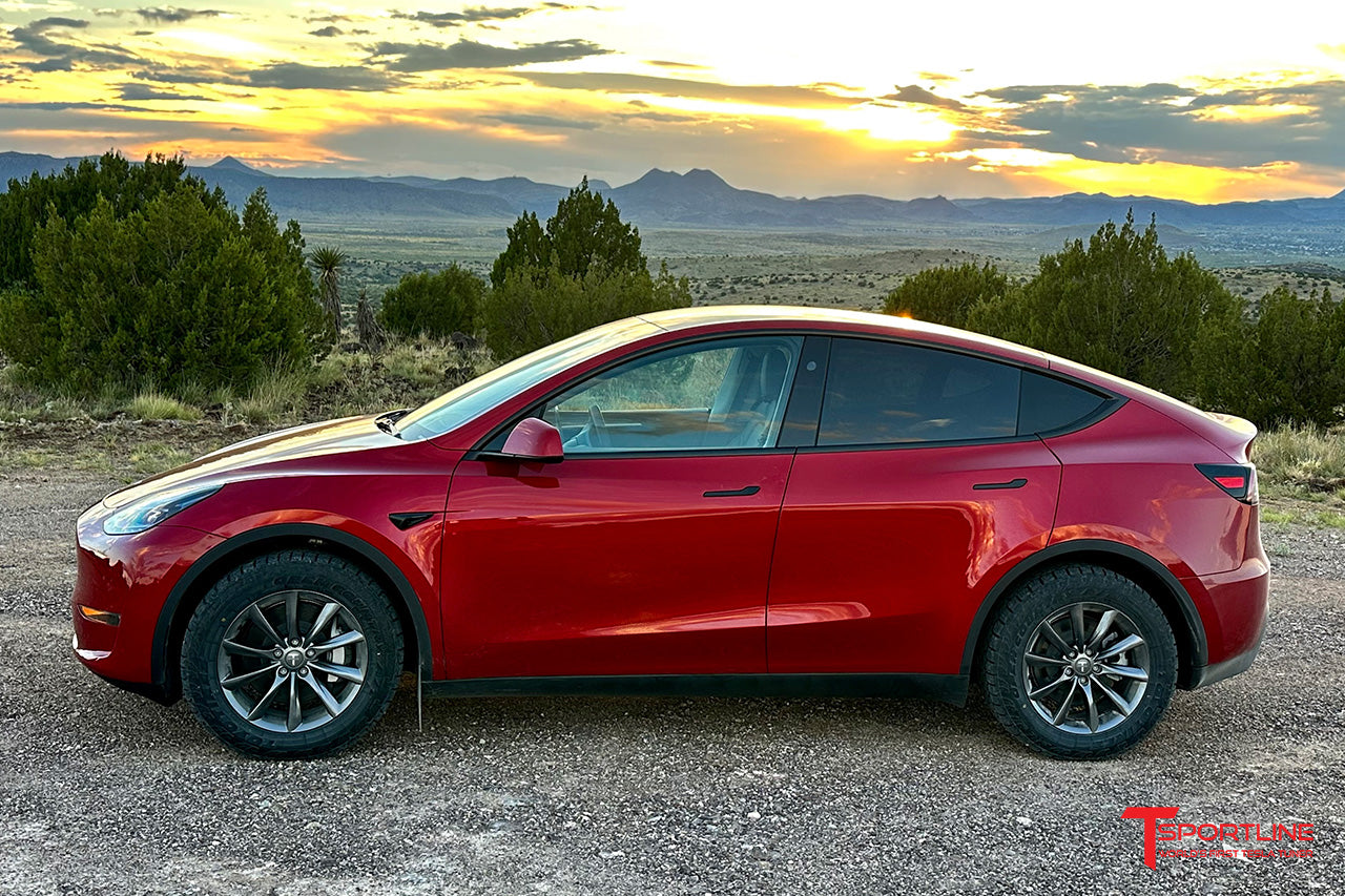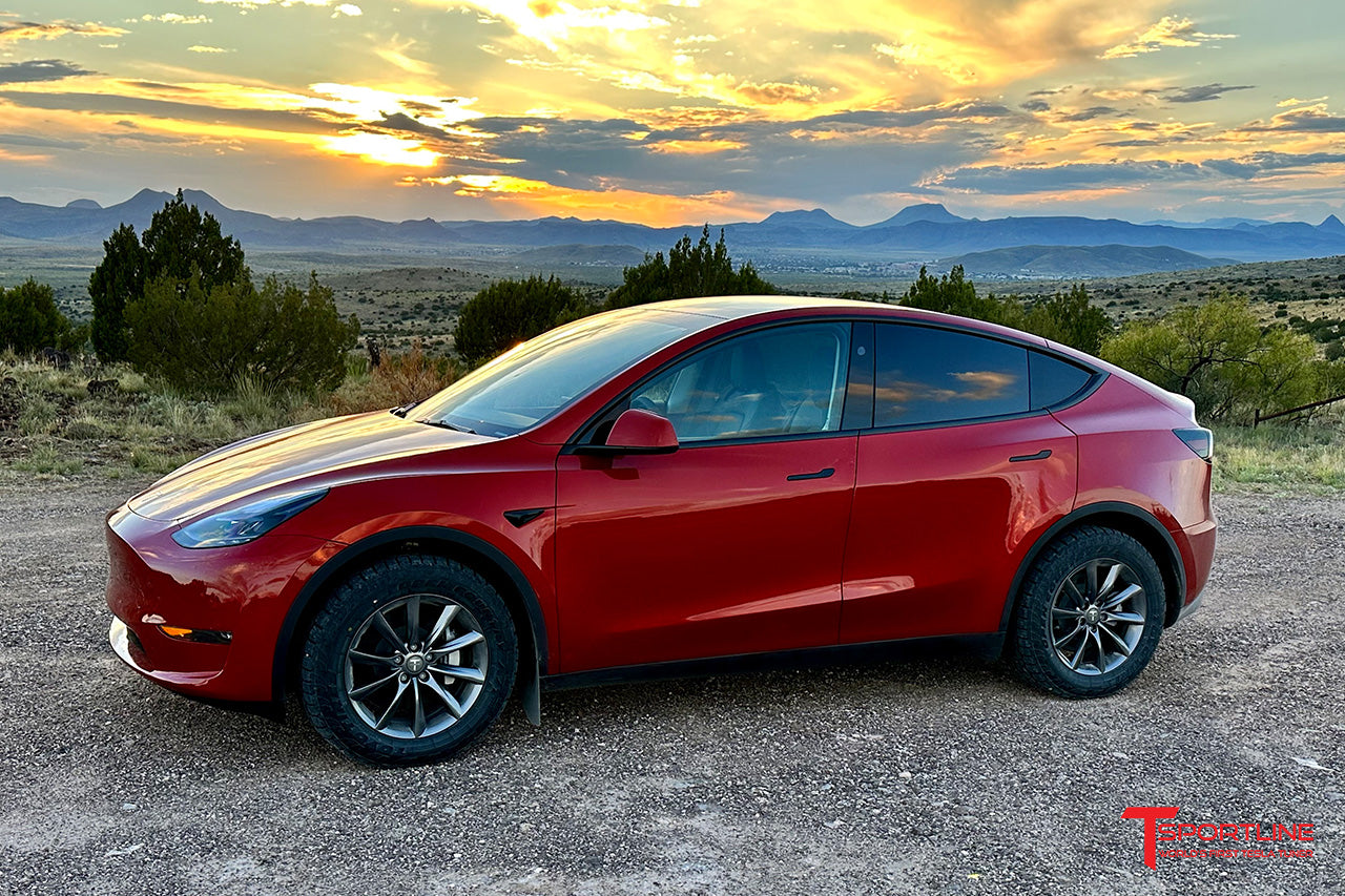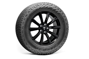 T Sportline is pleased to announce the world’s first official overlanding wheel and tire package for Tesla Model Y.   This combo will bolt right onto any Tesla Model Y without modifications and immediately transform your Model Y into a capable overlander. The T Sportline 18” TST flow forged wheel not only looks great, it provides upgraded strength over stock, suitable for the harshness that accompanies overland and off-road terrains. Thanks to TST’s flow forged structure, the wheels also net a weight savings vs factory cast Tesla wheels. The resulting reduction in unsprung weight aids in improving suspension stability during overlanding.  Ride comfort quality is also improved with 18" tires, due to the added sidewall (+0.450") cushion. The 18" tire package creates the most cushion to safeguard against damage while overlanding. The 4.8" tall sidewall also reduces the likelihood of 'curbing' your wheels, as commonly occurs on lower profile / larger diameter setups.