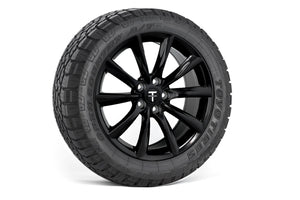 Get your camping gear packed, this T Sportline overland adventure wheel and tire package is ready for action.  If you’re readying to explore off road, enjoy an overland adventure, sleep in your camp equipped Tesla Model Y, or navigate the deepest of snow roads, this package will impress.