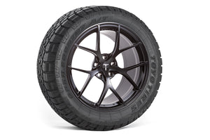 Get your camping gear packed, this T Sportline overland adventure wheel and tire package is ready for action. If you’re readying to explore off road, enjoy an overland adventure, sleep in your camp equipped Tesla Model Y, or navigate the deepest of snow roads, this package will impress.