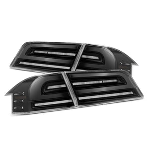 These Tesla Model S LED taillights are designed with two LED tubes as a parking light. The center LED strip in the outer housing (the housing that attaches to the quarter panel) functions as a brake light and sequential turn signal, and the bottom LED strip functions as blinking turn signal. For the inner housing (the housing that attaches to the deck lid), the center LED strip functions as a reverse light in brighter than stock, white LED.