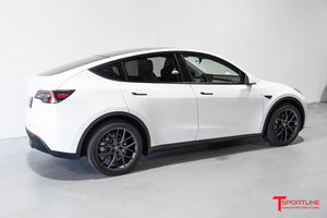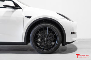 Yes, 20x10" TSR wheels fit your factory Tesla center caps. They also fit your factory TPMS, factory 255/40-20" tires and your factory lug nuts. In other words, there's no need to use any aftermarket hardware.