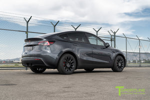 Yes, 19x9.5" TSV wheels fit your factory Tesla center caps. They also fit your factory TPMS, factory 255/45-19" tires and your factory lug nuts. In other words, there's no need to use any aftermarket hardware.