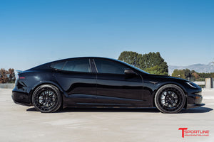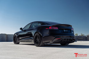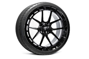 Yes, 21x9.5"and 21x10.5" TS Series forged wheels fit your factory Tesla center caps. They also fit your factory TPMS, tires, and lug nuts. In other words, there's no need to switch to any aftermarket hardware.