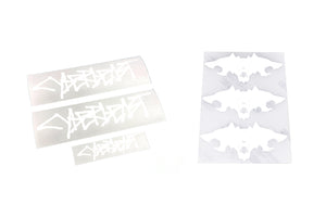 After completing our first Cybertruck wrap we had to re-create the Cyberbeast logo from vinyl so we could re-badge the Cybertruck tailgate and fender with the original look.  The Cyberbeast Cybertruck features a laser etched logo badge on the stainless steel, so it cannot be removed and re-installed.  Rest assured, we properly measured the original etching and drew our replacement badge to the correct dimensions.   Offered to those who need to replace their logo after installing a wrap!