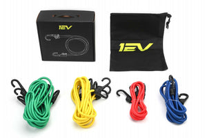 Time to secure your Tesla Cybertruck cargo! Practically every bungee cord on the market is too short to properly secure cargo in Cybertruck truck beds or between other longer points. Our engineers set out to spec a set of longer length bungee straps to enable better versatility in longer situations. Team 1EV has procured a 13 piece kit (plus a tote bag) of bungee cord straps for use with T Sportline L-Track Ring Hooks, Cybertruck bed's factory cargo hooks, or whatever other strap and securing needs you encounter - in the Cybertruck, other Tesla or vehicle, around the house, or wherever you need! The kit includes four different length bungee cords and each length has a unique color. The polymer hook ends are injection molded and will not rust!