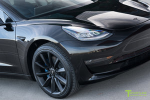 Yes, 19x8.5" TST wheels fit your factory Tesla center caps. They also fit your factory TPMS, factory 235/40-19" tires and your factory lug nuts. In other words, there's no need to use any aftermarket hardware.