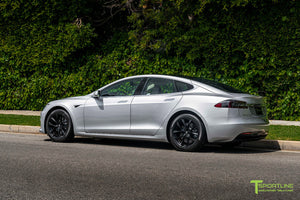 Yes, 19x8.5" TSS wheels fit your factory Tesla center caps. They also fit your factory TPMS, factory 245/45-19" tires and your factory lug nuts. In other words, there's no need to use any aftermarket hardware.