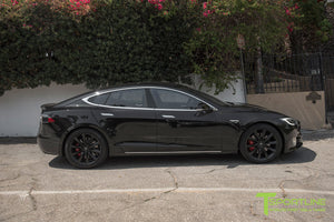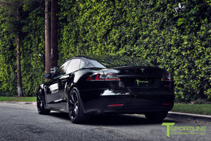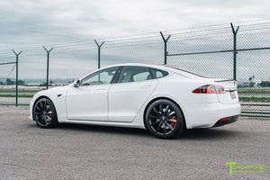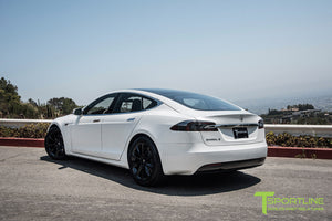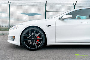 Yes, 20x9.0" and 20x10.0" TST wheels fit your factory Tesla center caps. They also fit your factory TPMS and your factory lug nuts. In other words, there is no need to use any aftermarket hardware.
