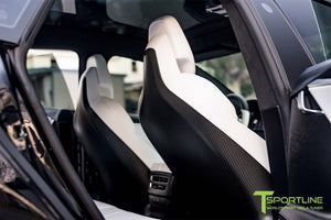Our T Sportline Tesla first gen Model S Carbon Fiber Seat Backs are a finely crafted shell that affixes over your current factory seat backs. Each seat back is is manufactured in a precision CNC'd alloy mold using genuine pre-preg bi-directional weave carbon fiber, which is cured in an autoclave. The pre-impregnated carbon weave fabric includes the proper curing epoxy resin allowing for the laminate to be directly laid in the pressure and heat forming mold. This is the only process which creates precision fitting components - don't be fooled by other lesser quality seat backs imported at low costs, expect inferior fitment on those for sure. The T Sportline seat back shell fitment, uniformity and cosmetics are superior.