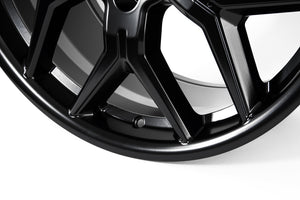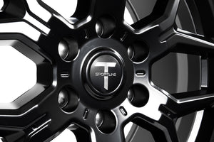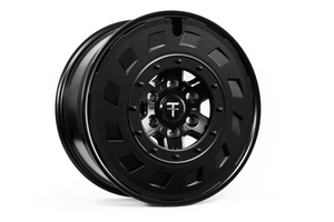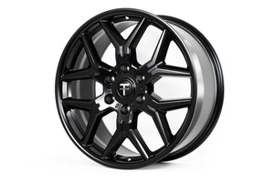 In effort to maximize the battery range on the Tesla Cybertuck, we've carefully designed the TCT wheel to work with a new T Sportline AeroMaxx aero cover, which is included.  The AeroMaxx aero cover is easily installed and removed, allowing Cybertruck owners the ability to swap covers on and off as desired.  With the aero cover installed, the wheel retains an aero-optimal (reduced drag) perimeter face region.   With the cover removed, the sporty 6 window spoke design is showcased.