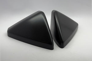 Improve the appearance of your Tesla Cybertruck side mirrors with T Sportline Precision Carbon Fiber Side Mirror Caps.  These T Sportline premium covers are manufactured in a precision CNC'd alloy mold using genuine pre-preg bi-directional weave carbon fiber, which is cured in an autoclave.  The pre-impregnated carbon weave fabric includes the proper curing epoxy resin allowing for the laminate to be directly laid in the pressure and heat forming mold.  This is the only process which creates precision fitting components - don't be fooled by other lesser mirror covers (or worse yet, cheap-looking faux carbon wrapped covers) imported at low costs, expect inferior fitment on those for sure.   The T Sportline Mirror Cover fitment, uniformity and cosmetics are superior.