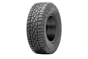 The Falken Wildpeak A/T4W 295/70/18 129/126R E All Terrain tire is designed for you to take your Cybertruck on the open road and the rugged backcountry.  Equipped with staggered shoulder blocks and exclusive 3-ply DURASPEC Sidewall Technology in select sizes, the A/T4W ensures all-terrain confidence and robust durability. Enhanced Heat Diffuser technology, increased tread rigidity, and the introduction of Heavy Duty (HD) sizes contribute to the A/T4W's improved towing capability compared to its predecessor. Engineered to thrive in harsh winter conditions, this severe-snow-rated tire boasts full-depth sipes, ensuring traction throughout its lifespan.