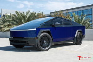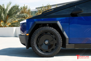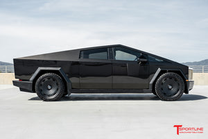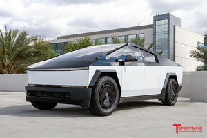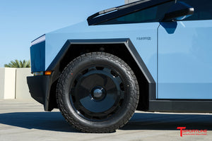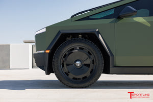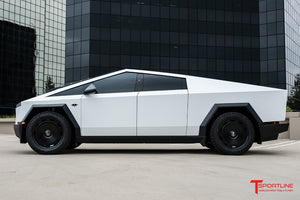 T Sportline's new 22" CTM (Tesla Cybertruck Monoblock) fully forged wheel has been engineered specifically to exacting dimensions to create a range preserving aero-efficient monoblock look while still retaining proper structural integrity for spirited Tesla Cybertruck driving. This Cybertruck wheel is a forged monoblock wheel built for lasting endurance in all driving environments with the full strength confidence needed to survive the worst of road conditions. The CTM wheel also features our exclusive fully floating center caps for the distinguished and tastefully hidden lug nut look. As you drive, the center caps 'float' in free rotation and the T logo remains horizontal at all times.