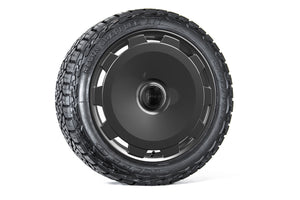 T Sportline's new 24" CTM (Tesla Cybertruck Monoblock) fully forged wheel has been engineered specifically to exacting dimensions to create a range preserving aero-efficient monoblock look while still retaining proper structural integrity for spirited Tesla Cybertruck driving. This massive, yet functional Cybertruck wheel is a forged monoblock wheel built for lasting endurance in all driving environments with the full strength confidence needed to survive the worst of road conditions. The CTM wheel line also features our exclusive fully floating center caps for the distinguished and tastefully hidden lug nut look. As you drive, the center caps 'float' in free rotation and the T logo remains horizontal at all times.