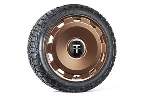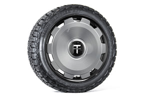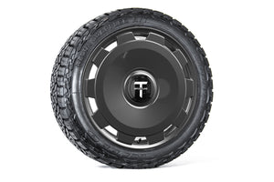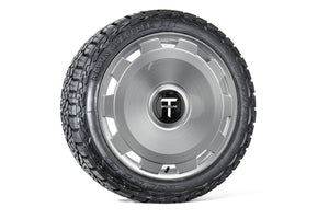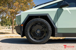 T Sportline's new 24" CTM (Tesla Cybertruck Monoblock) fully forged wheel has been engineered specifically to exacting dimensions to create a range preserving aero-efficient monoblock look while still retaining proper structural integrity for spirited Tesla Cybertruck driving. This massive, yet functional Cybertruck wheel is a forged monoblock wheel built for lasting endurance in all driving environments with the full strength confidence needed to survive the worst of road conditions. The CTM wheel line also features our exclusive fully floating center caps for the distinguished and tastefully hidden lug nut look. As you drive, the center caps 'float' in free rotation and the T logo remains horizontal at all times.