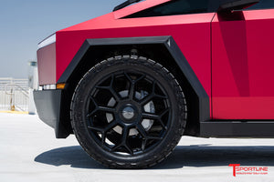 Tesla Cybertruck shatters all automotive design standards with a 'stand by itself' edgy design. Our team set out to create a Cybertruck wheel which would accentuate the truck design language. Our unique 16-window, aero-friendly monoblock concept strikes a perfect balance of aero optimization, strength and style while meshing the symmetry of 6 lugs, and exposing a tasteful view of the obscured brake calipers. T Sportline designs truly nailed success with TC8!