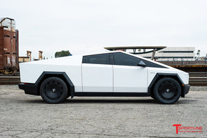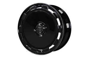 T Sportline's new 24" CTM (Tesla Cybertruck Monoblock) fully forged wheel has been engineered specifically to exacting dimensions to create a range preserving aero-efficient monoblock look while still retaining proper structural integrity for spirited Tesla Cybertruck driving. This massive, yet functional Cybertruck wheel is a forged monoblock wheel built for lasting endurance in all driving environments with the full strength confidence needed to survive the worst of road conditions. The CTM wheel line also features our exclusive fully floating center caps for the distinguished and tastefully hidden lug nut look. As you drive, the center caps 'float' in free rotation and the T logo remains horizontal at all times.