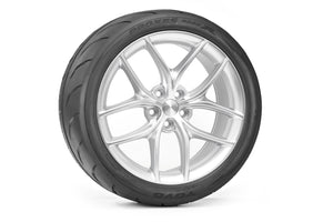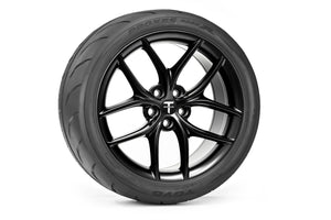 The Toyo Proxes R888R Competition Tires are 245/40/18 (25.7” diameter), measuring about 2.2% shorter than factory 235/45/18 (26.3” diameter), which will improve the gear ratio for maximum acceleration. Credit goes to a new tread design and an improved contact patch that puts even more rubber on the track. The tires feature R-compound treads that warm up quickly for high levels of grip. Internal construction of the tire features a multi-ply Rayon casing supporting two wide high-tensile steel belts. A spirally-wound nylon reinforcement ply provides additional high-speed stability and durability. The tire is molded into an aggressive asymmetric tread pattern with large outboard shoulder blocks to provide the added lateral grip that enables track success. The T Sportline Toyos measures 3.2% wider (9.6” wide), versus factory tire width of only 9.3”, further increasing tire grip for racing. The package is fully DOT compliant (street legal), allowing the convenience of installation at home and suitable for short drives to and from the racing event in warm and dry weather (for long distance travel to racing events or during wet conditions, we recommend swapping this package on at the track). As a racing spec package, these tires are just a tad shy of the ‘load rating’ typically specified for a Model 3 18” Wheel; 98 = 1,653lbs. The Toyo R888R 245/40/18 carries a load rating of 97 = 1,609lbs. This load rating is safe for use during racing (when the car is not at full capacity with four passengers and cargo), but not recommended for extended time use with a ‘fully loaded’ Tesla Model 3 (ie. four passengers, frunk/trunk full of heavy goods, etc).