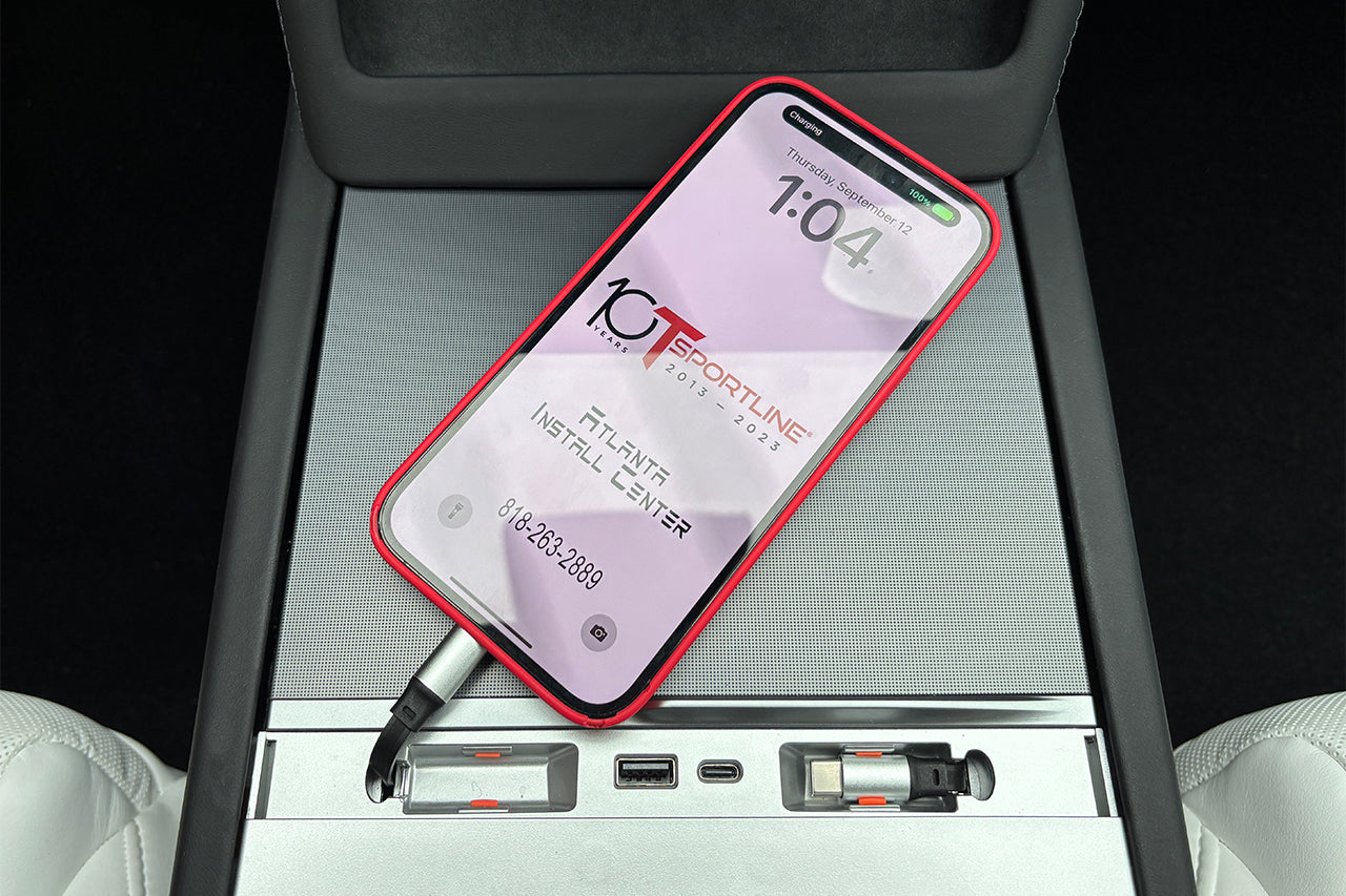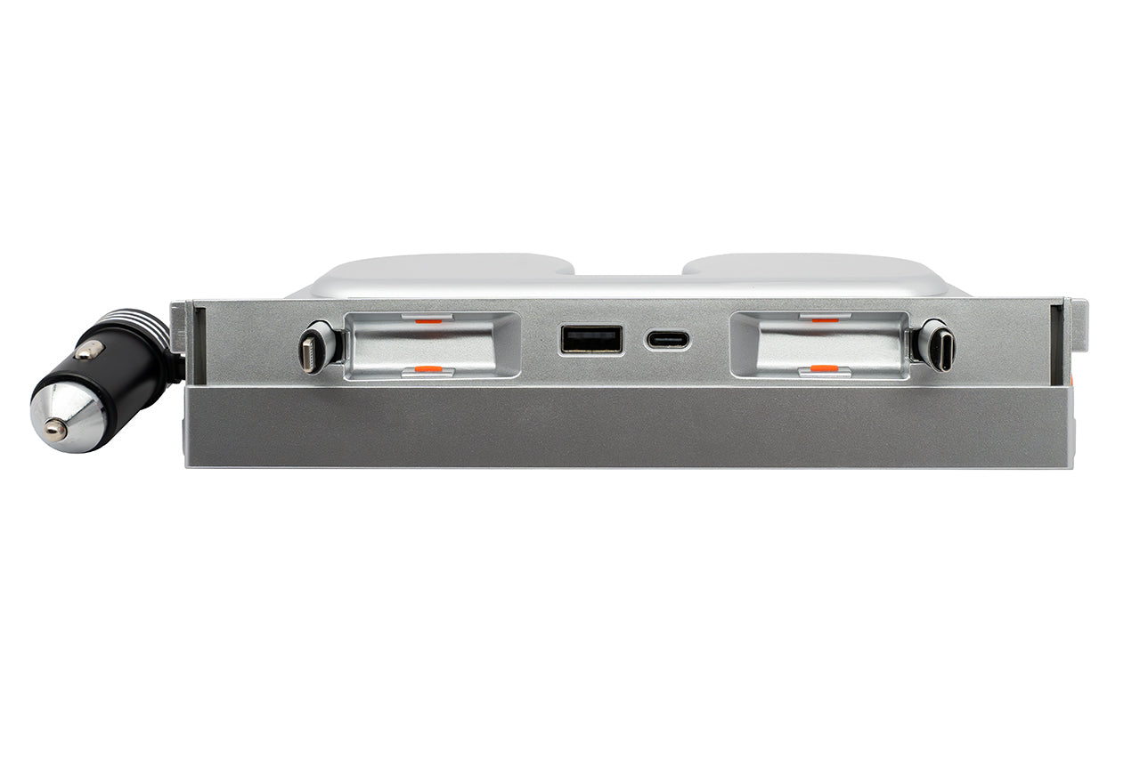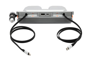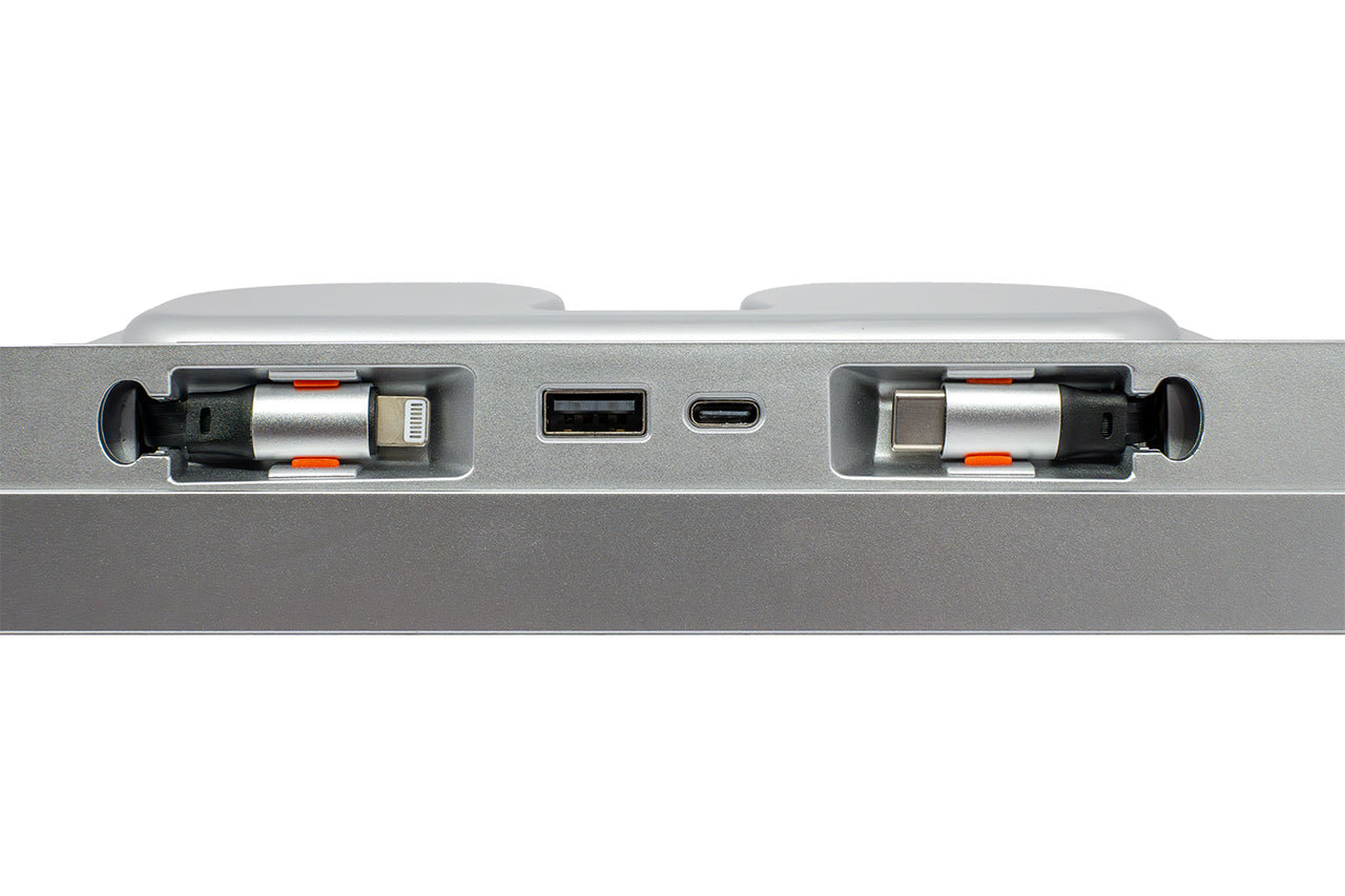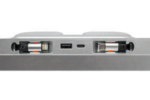 In addition to the USB plugs, the T Sportline Power Hub also features integrated blue LED port illumination making it easy to see ports in low light. The blue light can be toggled on/off with touching the depicted light contact switch.