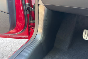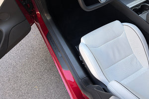 As a low profile car, the Tesla Model 3 Highland door sills and kick panels are prone to having shoes drug across them while getting in and out of the vehicle. The T Sportline Door Sill and Kick Panel Protection Covers will both cover and protect the factory trim while adding a sporty carbon fiber pattern to the sills. These parts are easy to DIY install, locking into place with the factory trim and further securing to the carpet with hook velcro.