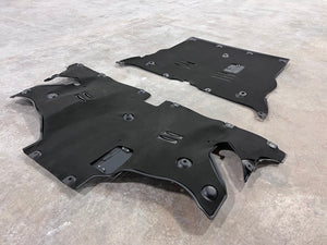 T Sportline has further developed undercarriage protection for the overlanding adventurist and the road warrior alike! These hydroformed aluminum skid plates feature sound dampening acoustic foam and black powdercoating while significantly improving underside vehicle protection and durability versus factory plastic underside panels.